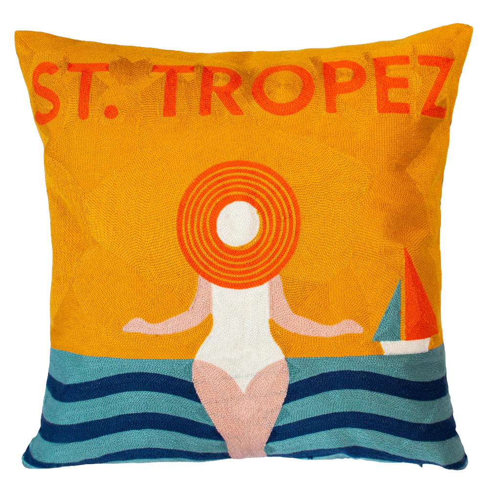 - Channel the vibrant spirit of the French Riviera with this St. Tropez Needlepoint Pillow an elegant, eye‑catching design inspired by one of the world’s most stylish seaside destinations. The rich hues and detailed embroidery bring warmth and sophistication to your sofa, bed or favourite armchair. It is reversible