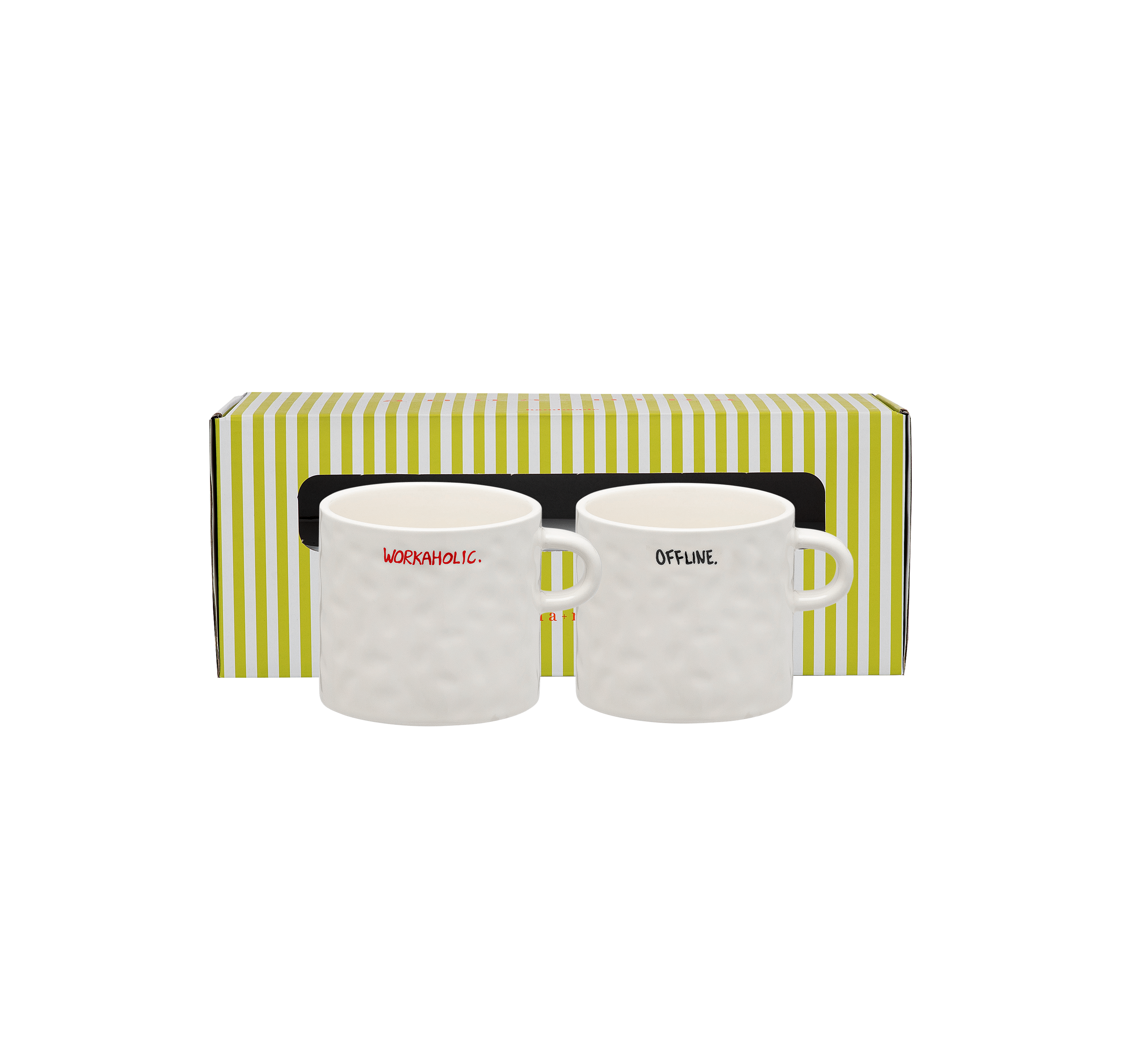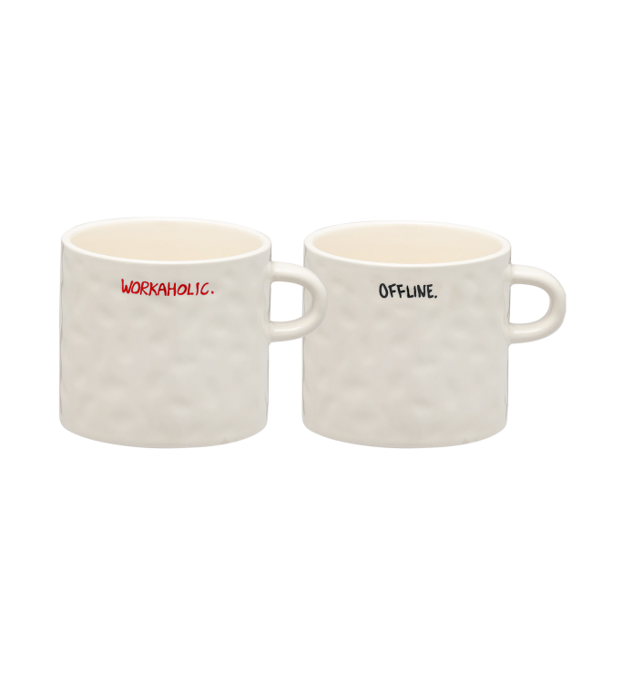 - A set of 2 hand painted mugs; Offline and Workaholic; perfect as a hint for someone who needs to take a break from too much work.