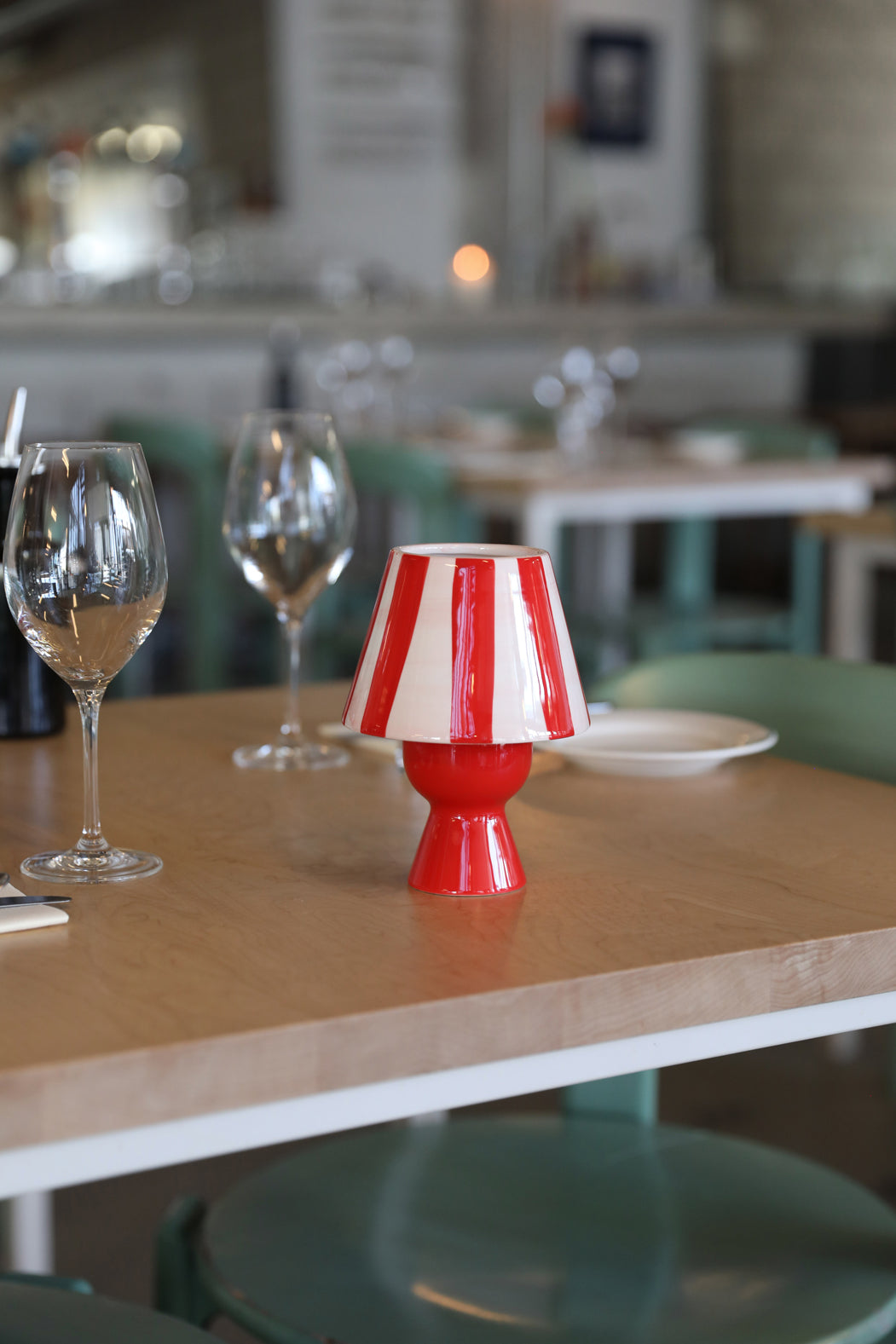 - Bring a warm, inviting atmosphere to your home with the tealight holder cantine, inspired by traditional bistro table lamps. This hand-painted ceramic piece consists of two parts and features a removable shade that makes lighting the tealight easy. Subtle cutouts at the top and bottom of the shade create a beautiful, ambient reflection of the candlelight, instantly adding cozy charm to any space