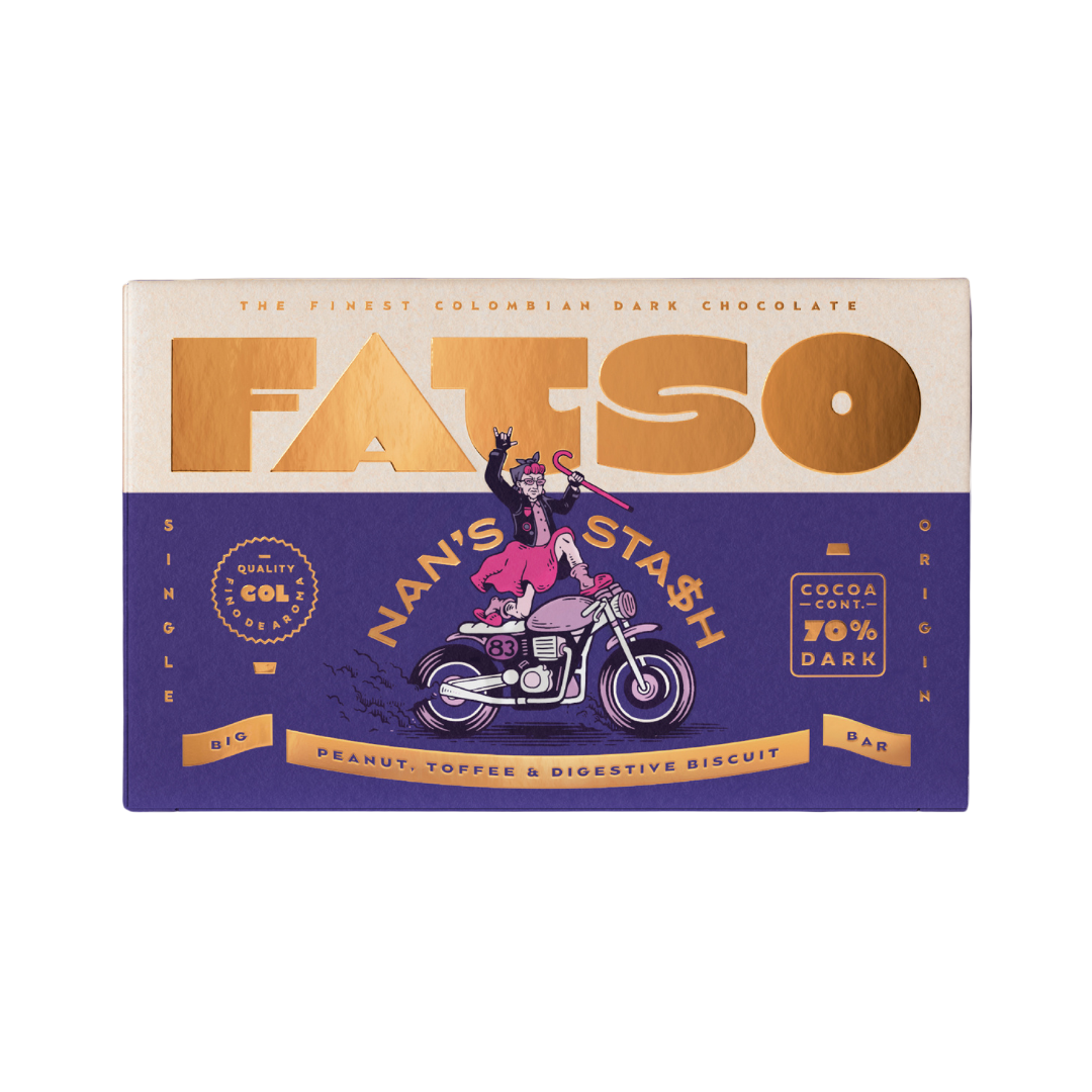 Fatso is a British chocolate brand that sources their cocoa solely from Luker, a Colombian family-owned business and co-operative that is 100% ethically driven. Luker has been awarded the highest chocolate classification in the industry, and they also work closely with a network of farmers, alliances and communities to improve social welfare, biodiversity and farming practices