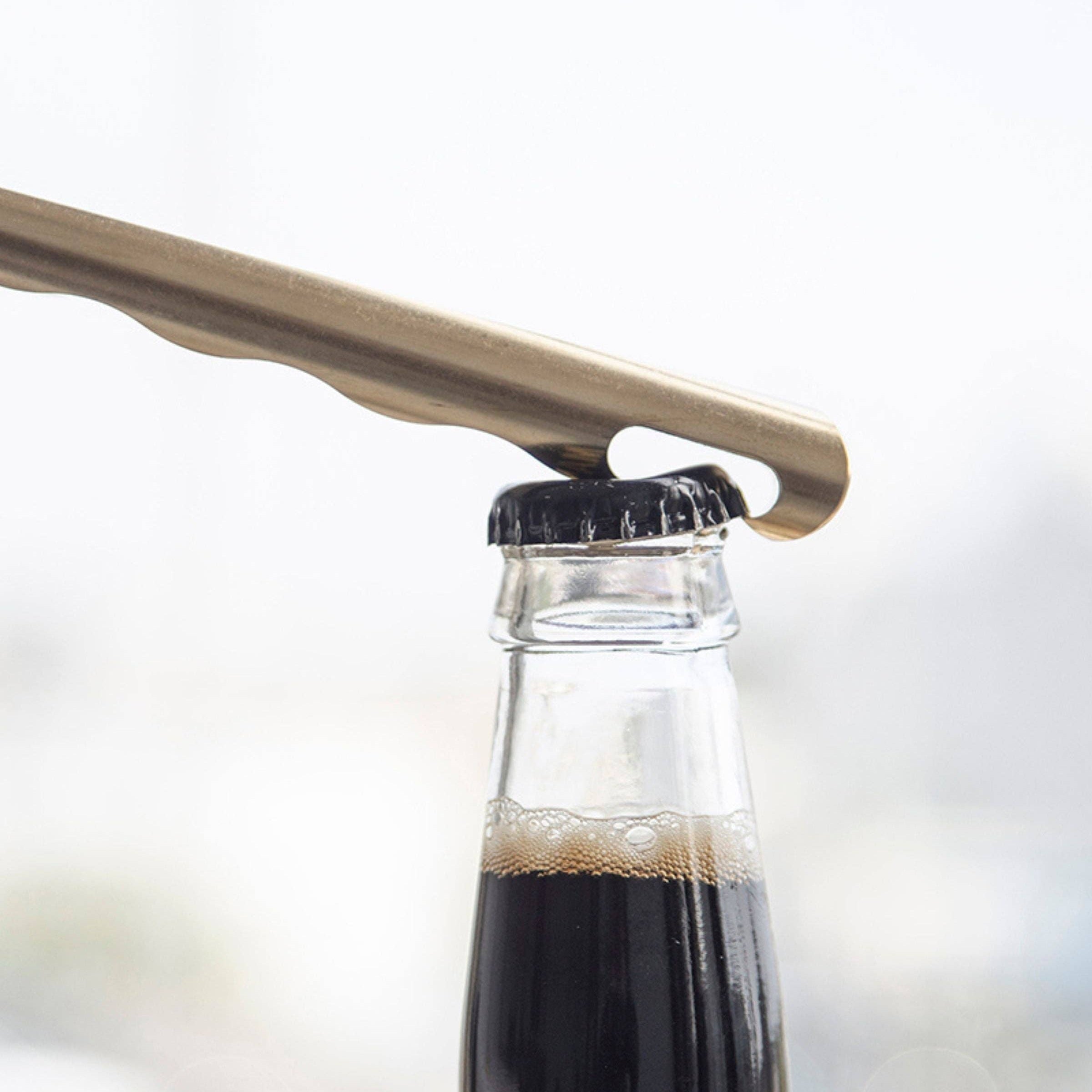 - Exuberant leverage for moments that fizz. A classic ‘churchkey style’ bottle opener milled from 5/8" diameter brass. The wave-like profile provides extra purchase when in use, and also adds visual and tactile interest.