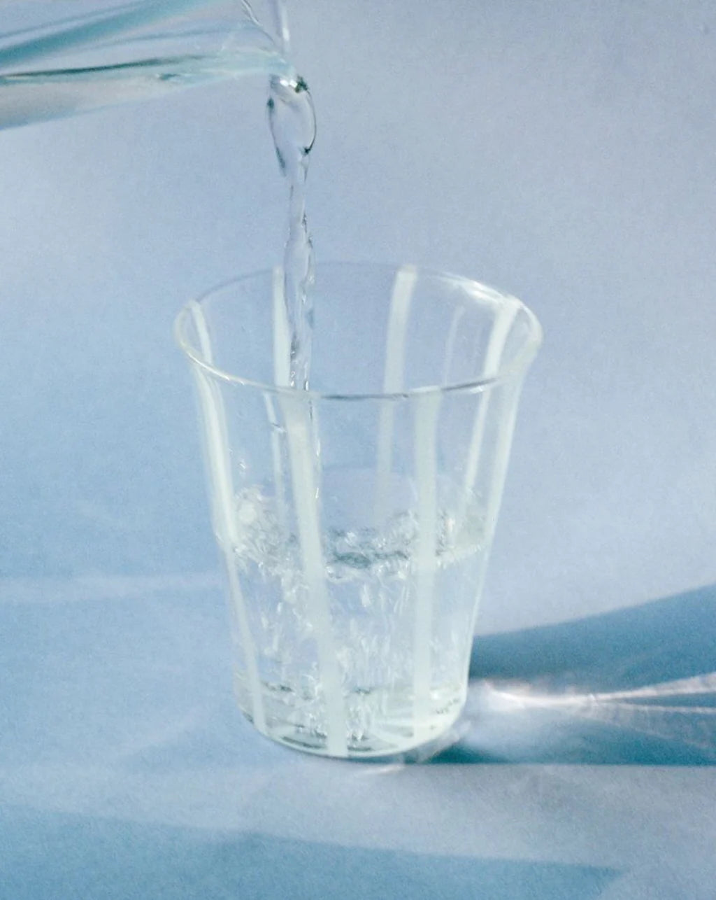 - Inspired by the fanning brim of wildflowers, these borosilicate glasses feature imperfect pastel stripes that run vertically along the curvature of the cup. Designed for daily use, from water and wine to freshly squeezed grapefruit juice and French soda