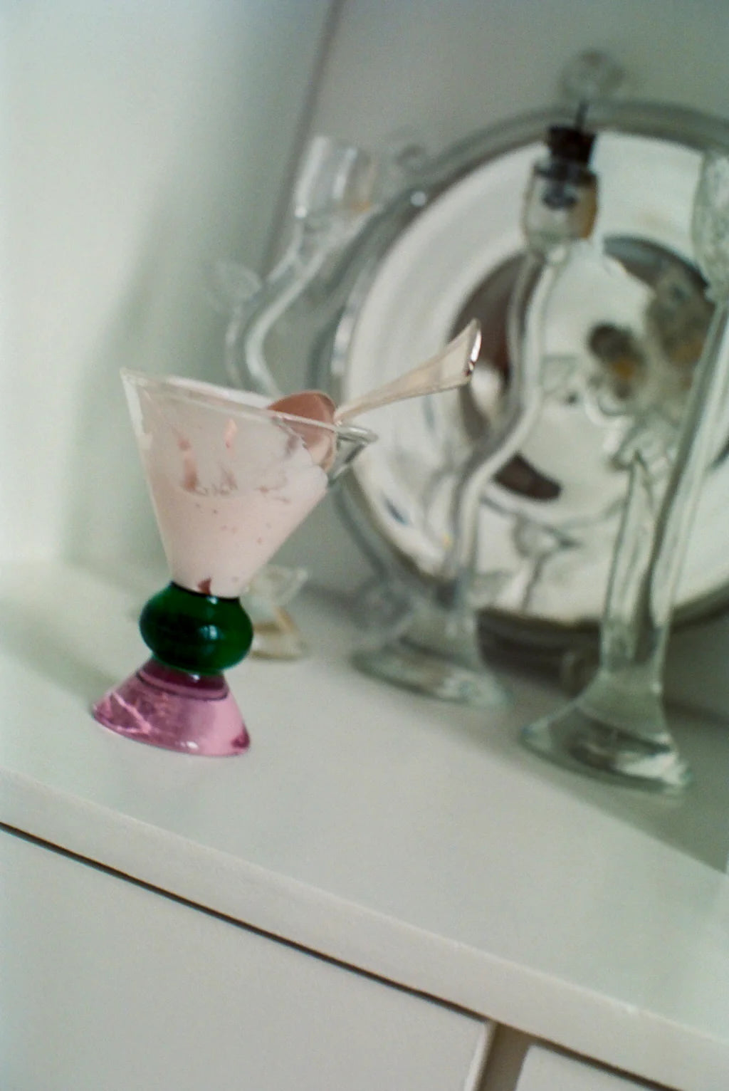 - A collaboration with non-alcoholic brand Ghia, these glasses are inspired by the colourful totem poles of postmodern design, the solid base and proportions of these stemless cocktail glasses were designed with consideration for longer drinks — spritzes, mixers, even sodas! — but still work beautifully with any classic cocktail