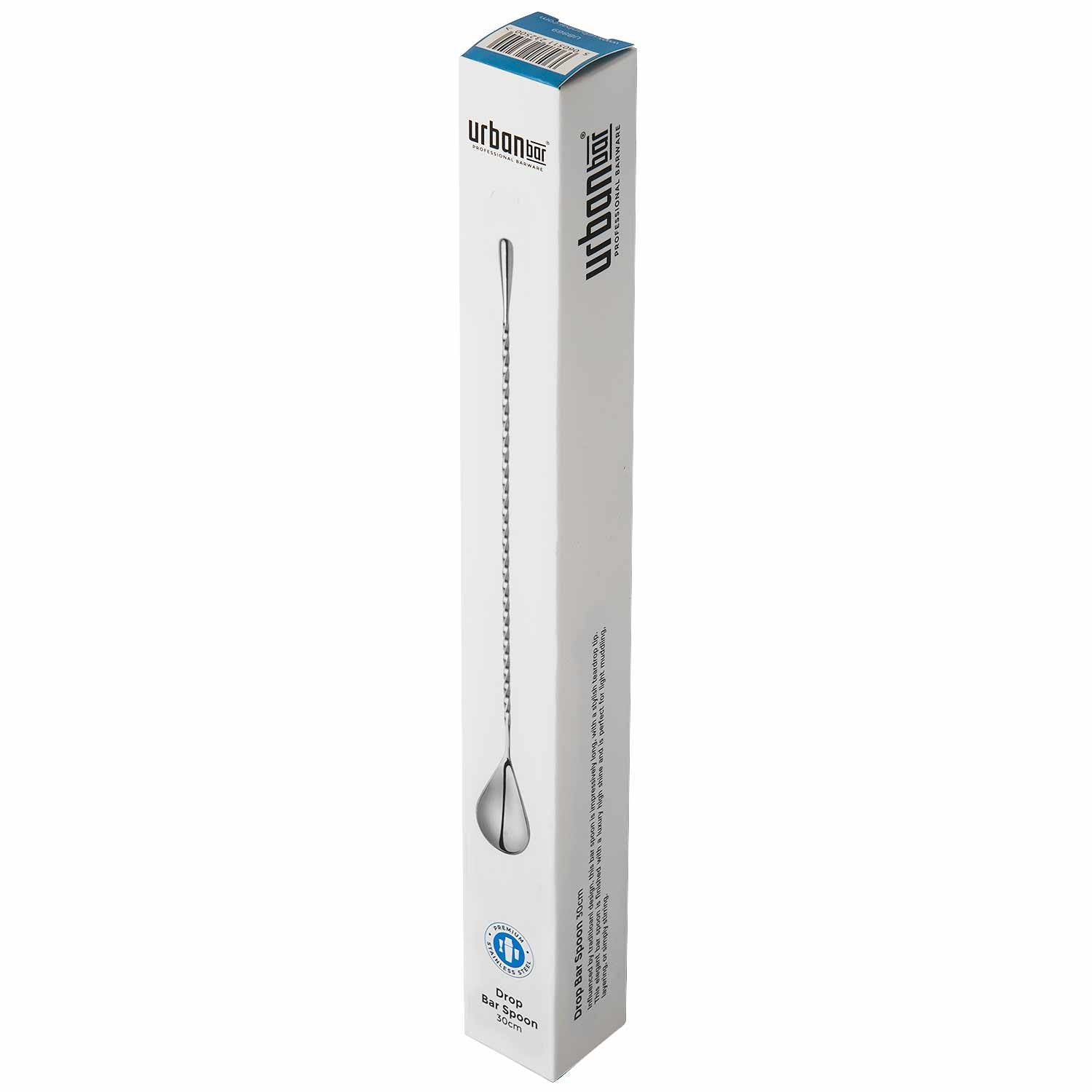 Sleek Japanese style bar spoon. Features a teardrop shaped tip for a comfortable hold and smooth finish